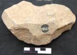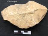 Worked on both the faces. Trimmed along left margin. Left side reduced by step flaking. Concave along the right margin. A longitudinal patch of cortex in the right margin. Ventral has flat longitudinal scars with convergen facial orientation. Short mid-ridge. Right margin is convex and thin.