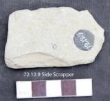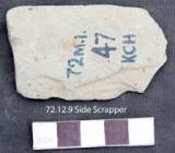 The tool is notched in the left margin to get a sharp working edge with a patch of cortex on the ventral face. The section is marginally flat and tappers towards left. The dorsal face is flat and the upper face is slightly concave. The tool is used.