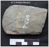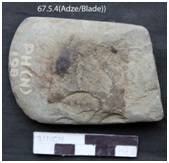 Made by flaking. The edge is Bifacially ground and beveled from the ventral. The tool has a convex edge. Ventral face is little convex, dorsal face is flat and margins are straight and thin. Butt is broken. Lenticular in median section.