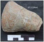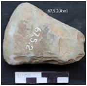 Made on a pebble with concave lateral sides shaped by alternate flaking and convex on both the faces. Ventral face is bifacially ground and convex showing marks of use. Butt is worked and little concave. Triangular in longitudinal and lenticular in median section.