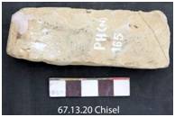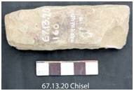 The specimen is partly broken in the working edge which signifies that the tool is used for chiseling purpose. The tool has a striking platform, which may be due to continuous hammering.