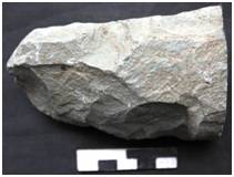 Bifacially flaked all over with a patch of cortex on the dorsal near the section. The right margin of the tool is secondarily flaked to obtain a cutting edge. The section is flat. The tip is flaked out with deep and marginal flake scar. It is slightly concave on the ventral and convex in the dorsal. The tip of the tool is flaked from both the sides to obtain a pointed working edge.