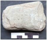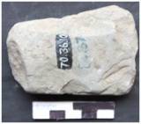 Bifacially flaked with a patch of cortex in the middle in the ventral surface. The margins are moderately thick. It is slightly convex on the ventral and partly concave on the dorsal face. The butt is thick and broad with an irregular poll. The left side margin in the dorsal is flaked. The section is irregular with a large flake scar on the dorsal.