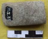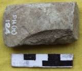 Ground all over with marks of natural breakage on the left side. The edge is sharp and straight. The working edge retains use mark. Platform portion is broken but even. The tool is small and miniature may be used for cutting and dressing small porous objects.