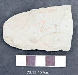 Bifacially worked.Butt is rounded. Margins are alternately flaked and straight. It is concave in the dorsal and slightly convex on the ventral. A patch of cortex is noticed in the left margin near the platform. The tool is sharpened in the butt end.