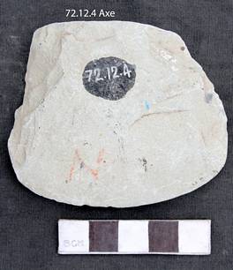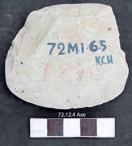 The edge is bifacially ground. Butt is broken. Right lateral margin is alternately worked. The left worked unifacially from upper. The tool is grinded and has a sharp cutting edge. The tool is relatively wide and is convex on one side.