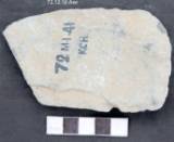 Made by flaking. Thin with flat faces. The lateral margins are bifacially trimmed, thin and sharp working end. Two bold scars on both the faces. The edge is thin and convex. Butt is broken and biconvex in median cross-section. Both the faces show parallel flaking from all over with removal of relatively small flake scars.