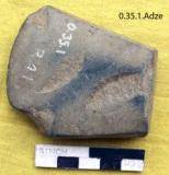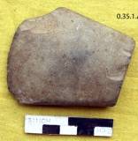 Bifacilally flaked all over. The ventral is flat and dorsal is concave. Straight and oblique margins. The working edge tappers on both the faces. Thin and straight cross-sections. The tool retains use mark and is heavily grounded all over.