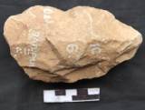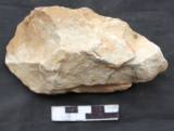 Trimmed bifacially with irregular facial orientations. Dorsal is fully worked and bold scar juxtapose at the left side. Right side has steps along the margin. Two bold step at both the margins. Thin and straight butt and sharp and pointed tip. It is triangular in longitudinal section.