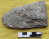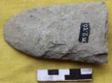 Bifacially flaked retaining scars with step termination. Ventral face is flat and dorsal is elevated. Margin are thin by alternate flaking. Thin, sharp and rounded butt, edge is broken. Lenticular in median section. The tool has a flat cross-section which is chipped from all the directions whose scars are relatively small and bold.