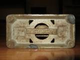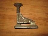 | Description / विवरण | This is a stapler used for stapling having a wide base. A spring witn a bar is attached in one side. A rectangular hole is on one side for entering stapling pins. Hotchkiss is written on both sides. |