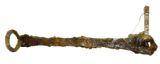 | Description / विवरण | A lachet having straight thick solid body with round body luted at one end and thick circular body with a perforation for nailing to a wooden door on the other end. |