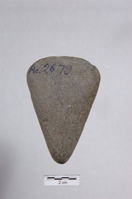 | Description / विवरण | Celt with round cutting and pointed butt end. Some portion of surface is polished mainly near cutting edge area. |