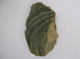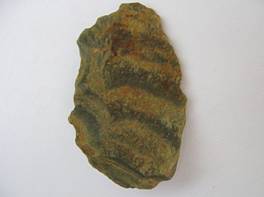| Description / विवरण | The flake has many ripple marks appearing as fish scales.The obverse side has a part of original cortex and a mark of large flaking. Reverse side has undulated surface due to the banded quality of the stone No side end having a sharp edge. |