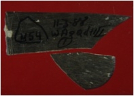 | Description / विवरण | Trench WA 1, Qdt 3, layer 1 depth 0 to 15 cms It s a knife made of bone, broken and its two pieces are available. One is bigger and pointed. Appearance is thin and colour is brown. |