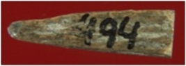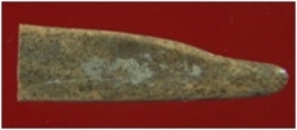 | Description / विवरण | Trench XA 1, Qdt 4, pit 1 S.B S.H, depth 120 to 180 cms It s a broken small arrow head made of bone. Shape is triangular. Appearance is brownish. |