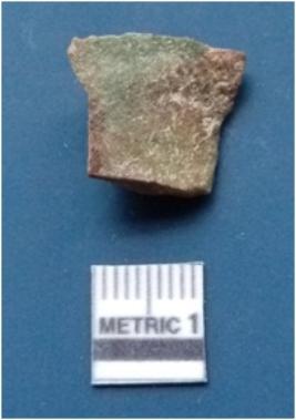 | Description / विवरण | It is a blade fragment. The ridges are clearly seen and the sides are sharp. It is brownish in colour and triangular in cross - section. |
