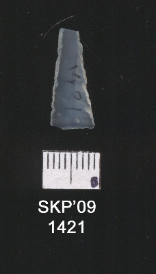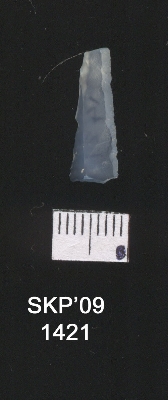 | Description / विवरण | Broken chalcedony blade, the retouch can be seen on both the sides, it is triangular in cross section. |