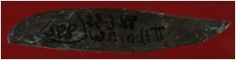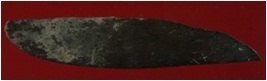 | Description / विवरण | Trench WA 1, Qdt 2, layer 1, depth0-5 cms It is a knife made of bone. Surface is smooth. Appearance is black. |