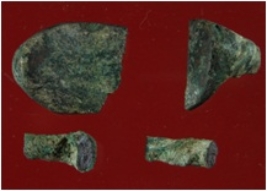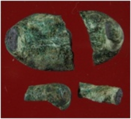 | Description / विवरण | Trench XB1, Qdt 2, Pit 3 S.B S.H, depth 0 - 35 cms It is a ring made of copper, broken into four pieces. All the pieces have hard patina on their surfaces. |