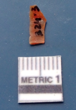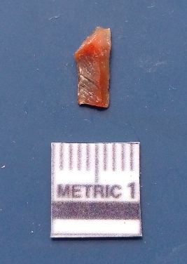 | Description / विवरण | It is a blade fragment. The ridges are clearly visible on the dorsal surface. It is orangish in colour. The sides are sharp and the ventral surface is plain. |