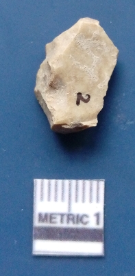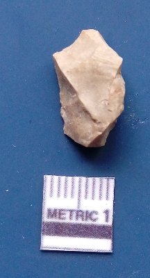 | Description / विवरण | It is a blade flake. It is grey in colour. The sides are sharp and the ventral surface is plain. The flakes are clearly seen on the dorsal surface. |