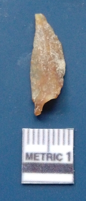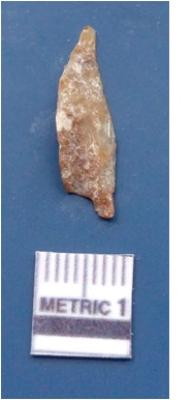 | Description / विवरण | It is a blade fragment. It is brownish in colour. The ridges are clearly seen on the dorsal surface. The sides are sharp and the ventral surface is plain. |