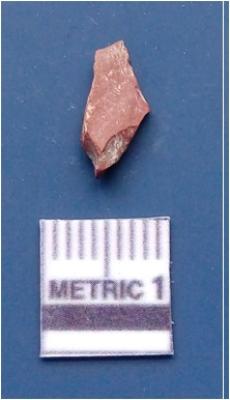 | Description / विवरण | It is a blade fragment. It is retouched and is brownish in colour. The ridges are clearly seen on the dorsal surface. The sides are sharp and the ventral surface is plain. |