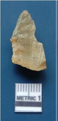 | Description / विवरण | It is a blade fragment. It is greyish white in colour. The ridges are clearly seen on the dorsal surface. The sides are sharp and the ventral surface is plain. |