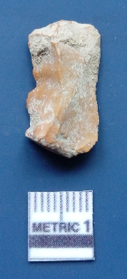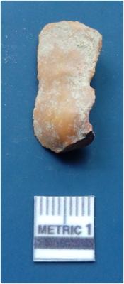 | Description / विवरण | It is a blade fragment. It is greyish white in colour. The ridges are clearly seen on the dorsal surface. The sides are sharp and the ventral surface is plain. The striking platform is clearly seen. |