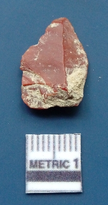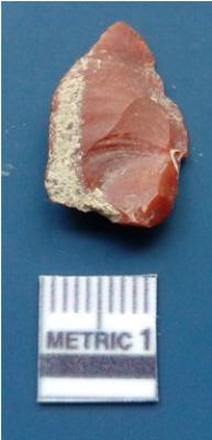 | Description / विवरण | It is a blade fragment. It is reddish brown in colour. The ridges are clearly seen on the dorsal surface. The sides are sharp and the ventral surface is plain. |