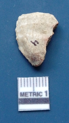 | Description / विवरण | It is a blade flake. The flake scars are clearly seen on the dorsal surface. The sides are sharp and the ventral surface is plain. It is trapezoidal in cross -section. |