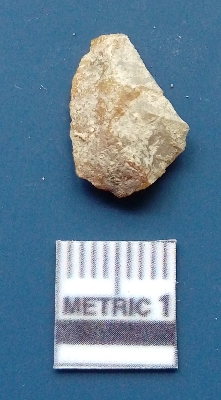 | Description / विवरण | It is a blade flake. The flake scars are clearly seen on the dorsal surface. The sides are sharp and the ventral surface is plain. It is white in colour. The bulb of percussion is clearly seen on the ventral surface. The striking platform is also clearly seen. |