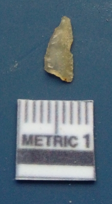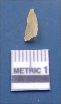 | Description / विवरण | It is a blade fragment. The flake scars are clearly seen on the dorsal surface. The sides are sharp and the ventral surface is plain. It is white in colour. The bulb of percussion is clearly seen on the ventral surface. It is retouched and is triangular in cross - section. |