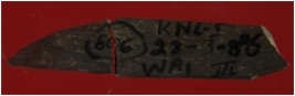 | Description / विवरण | Trench WA 1, Qdt 3, layer 2, depth -20 - 42 cms It is a piece of blade made of bone broken into two pieces. Tip is pointed, surface is smooth and colour is blackish. |