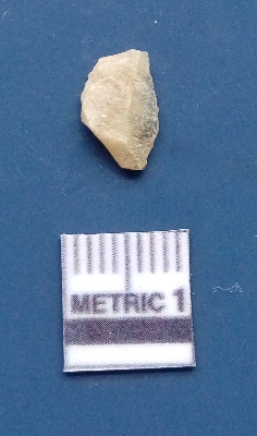 | Description / विवरण | It is a blade fragment. The flake scars are clearly seen on the dorsal surface. The sides are sharp and the ventral surface is plain. It is white in colour. |