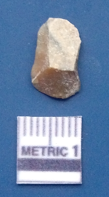 | Description / विवरण | It is a blade fragment. The ridges are clearly seen on the dorsal surface. The sides are sharp and the ventral surface is plain. It is brownish in colour. The striking platform and the bulb of percussion are clearly visible. |