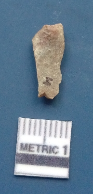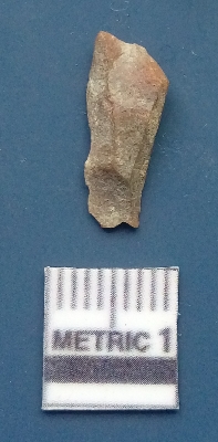| Description / विवरण | It is a blade fragment. The ridges are clearly seen on the dorsal surface. The sides are sharp and the ventral surface is plain. It is brownish in colour.The striking platform and the bulb of percussion are clearly visible. |