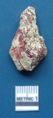 | Description / विवरण | It is a blade flake. The flake scars are clearly seen on the dorsal surface. The sides are sharp and the ventral surface is plain. It is reddish in colour. The soil incrustations are clearly visible on the surface. |