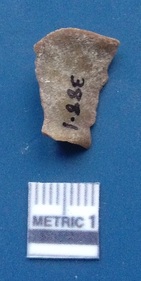 | Description / विवरण | It is a blade flake. The flake scars are clearly seen on the dorsal surface. The sides are sharp and the ventral surface is plain. It is brownish in colour. |