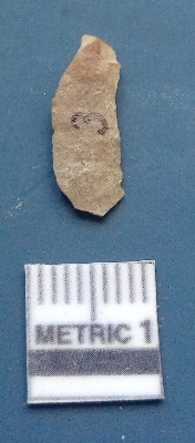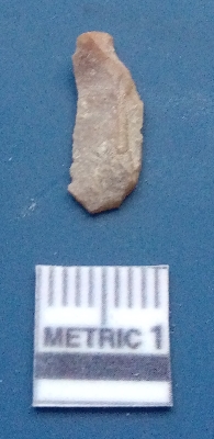 | Description / विवरण | It is a blade flake. The flake scars are clearly seen on the dorsal surface. The sides are sharp and the ventral surface is plain. It is brownish in colour. The soil incrustations are clearly visible on the surface. |