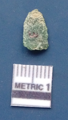 | Description / विवरण | It is a lade fragment. The ridges are clearly seen on the dorsal surface. The sides are sharp and the ventral surface is plain. |