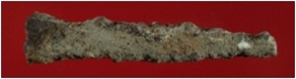 | Description / विवरण | Trench XC 5 , Qdt 1, depth 630 cms, layer 19 It is an iron piece. Badly rusted and mud is deposited. Surface is rough and colour is rusty brown. |