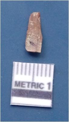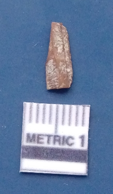 | Description / विवरण | It is a blade fragment. The ridges are clearly seen on the dorsal surface. The sides are sharp and the ventral surface is plain. It is brownish in colour. |