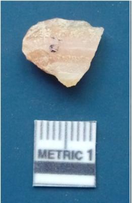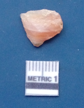 | Description / विवरण | It is a blade fragment. The ridges are clearly seen on the dorsal surface. The sides are sharp and the ventral surface is plain. It is light orangish in colour. |