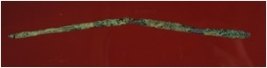 | Description / विवरण | Trench WD 2, Qdt 1, Pit 1 SB SH, depth 30 cm It is a copper rod piece with rough and damaged surface. It was used mainly to put antimony into eyes by both men and women. Appearance is green. |