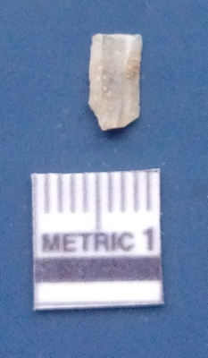 | Description / विवरण | It is a blade fragment. The ridges are clearly seen on the dorsal surface. The sides are sharp and the ventral surface is plain. It is trapezoidal in cross - section. |