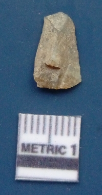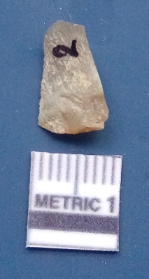 | Description / विवरण | It is a blade fragment. The ridges are clearly seen on the dorsal surface. The sides are sharp and the ventral surface is plain. It is white in colour. |