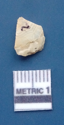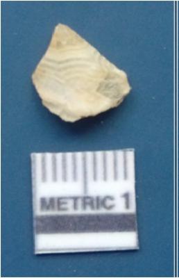 | Description / विवरण | It is a blade fragment. The ridges are clearly seen on the dorsal surface. The sides are sharp and the ventral surface is plain. It is creamish white in colour. The bands are also clearly visible on the surface. |