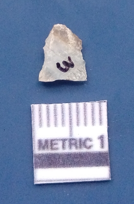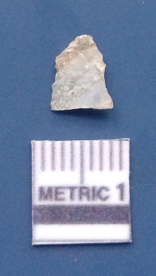 | Description / विवरण | It is a blade fragment. The ridges are clearly seen on the dorsal surface. The sides are sharp and the ventral surface is plain. It is white in colour. |